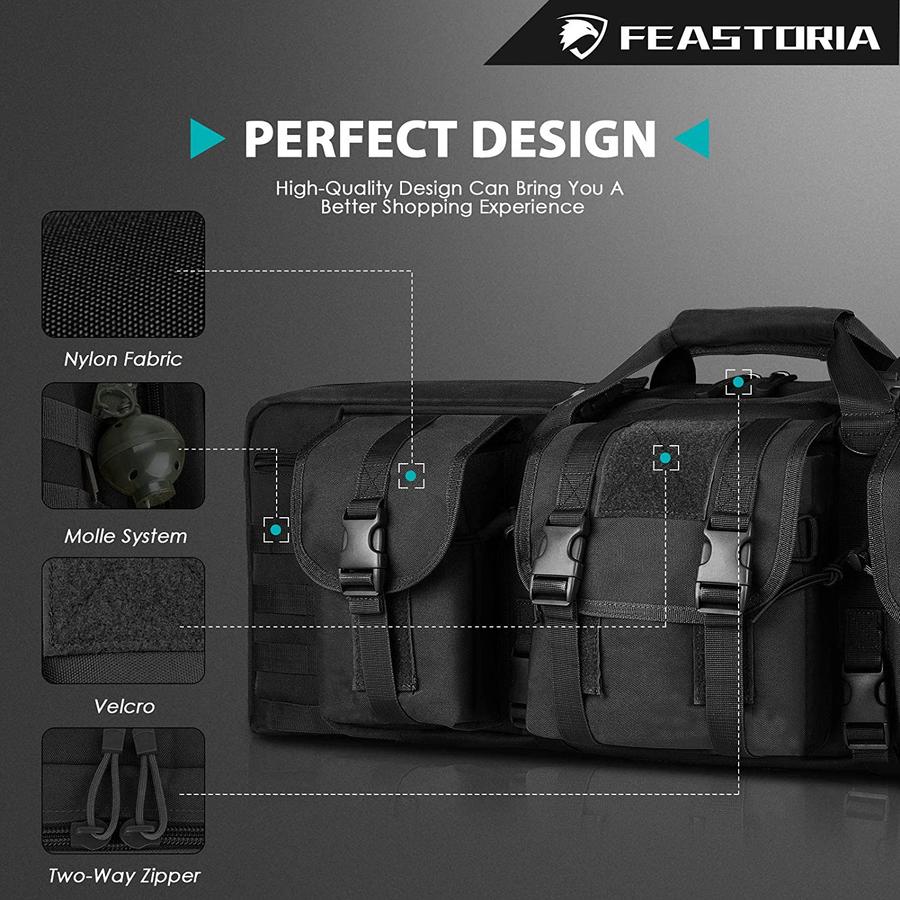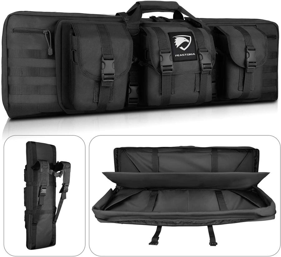 - 【HIGH QUALITY】Tactical Rifle case is made of high quality 900D heavy-duty industrial PVC nylon to protect your gear from the wear. We stick to use the thick materials, reinforced stitched for strength and durability. Convoluted foam inside provides additional support and the interior foam padding insulates the guns against shock due to falls.