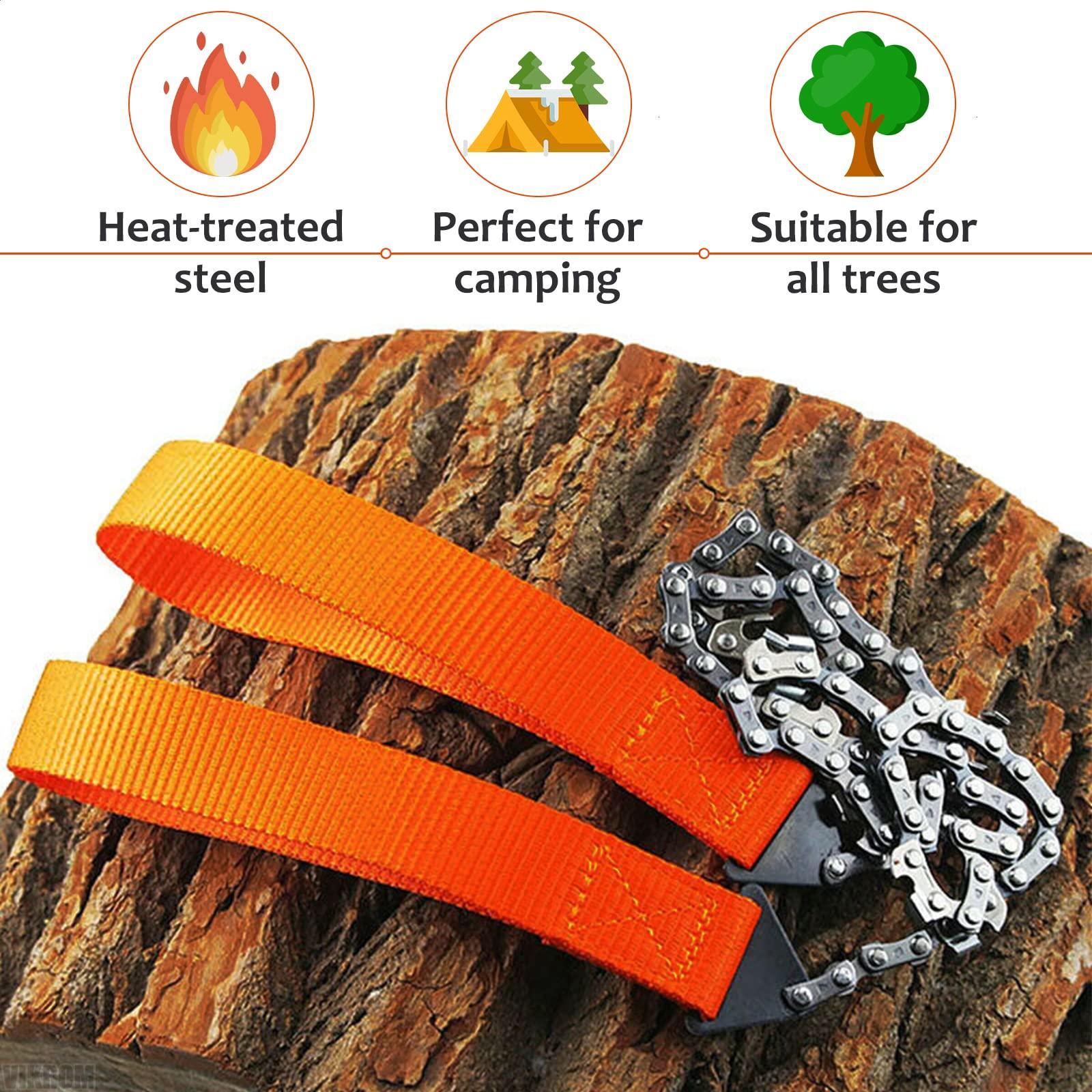 High-Quality Foldable Saw: This 25-inch survival hand saw excluding the handle is made of high-strength super heat-treated carbon steel with super-strong and durable nylon belt. This portable chain saws for trees with rope is perfect for anyone cutting hard wood.